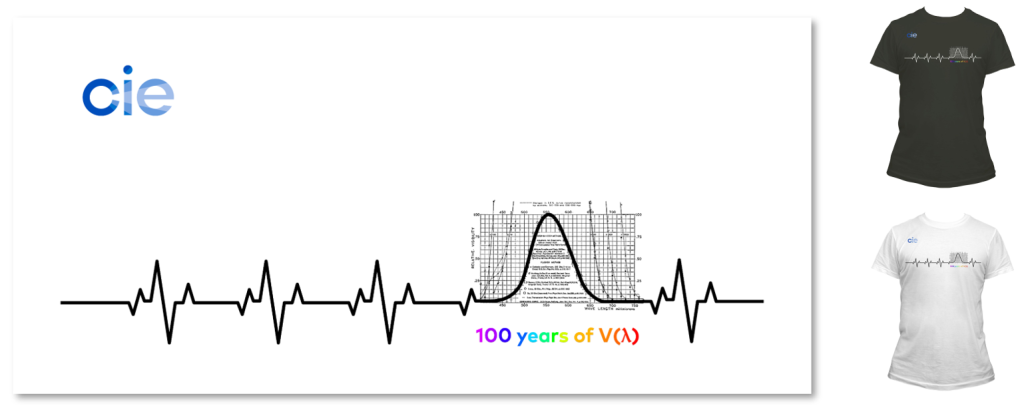 In 2024 we celebrated 100 years of V(lambda) with a commemorative Heart Beating for Light t-shirt in black and white.