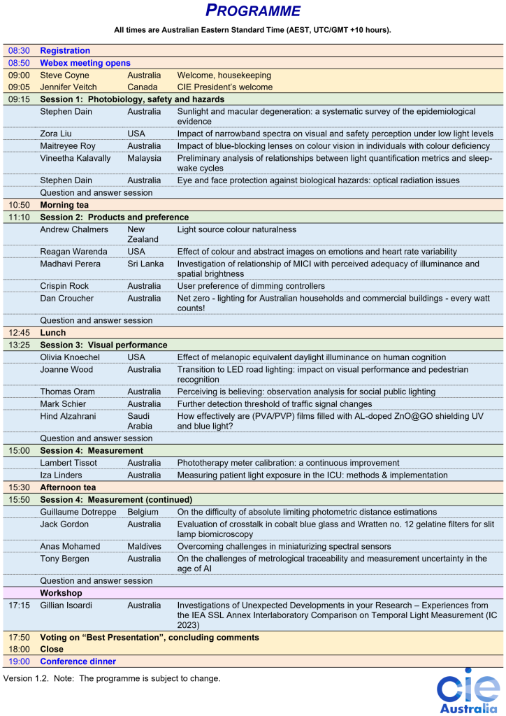 The 2025 edition of the CIE Australia Lighting Research Conference, CALReCo2025, was held on Tuesday 4th February 2025 at QUT, Brisbane.  The conference was attended by 52 attendees, with 30 in person and 22 online.